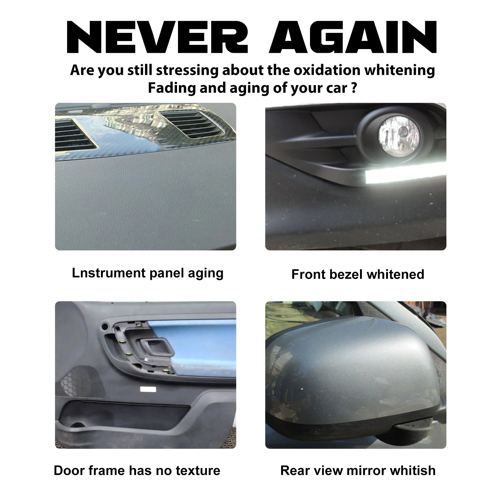 • Restaura Qualquer Coisa: Adequado para todos os tipos de superfícies de plástico, borracha e vinil do seu carro.