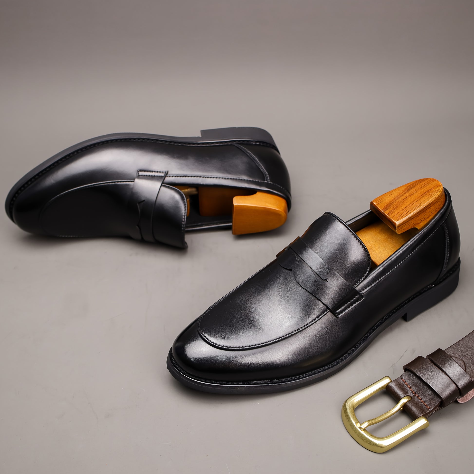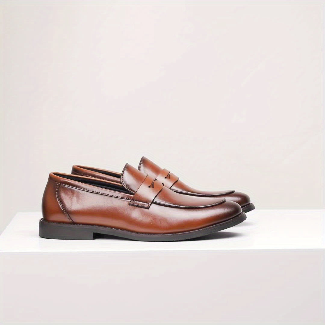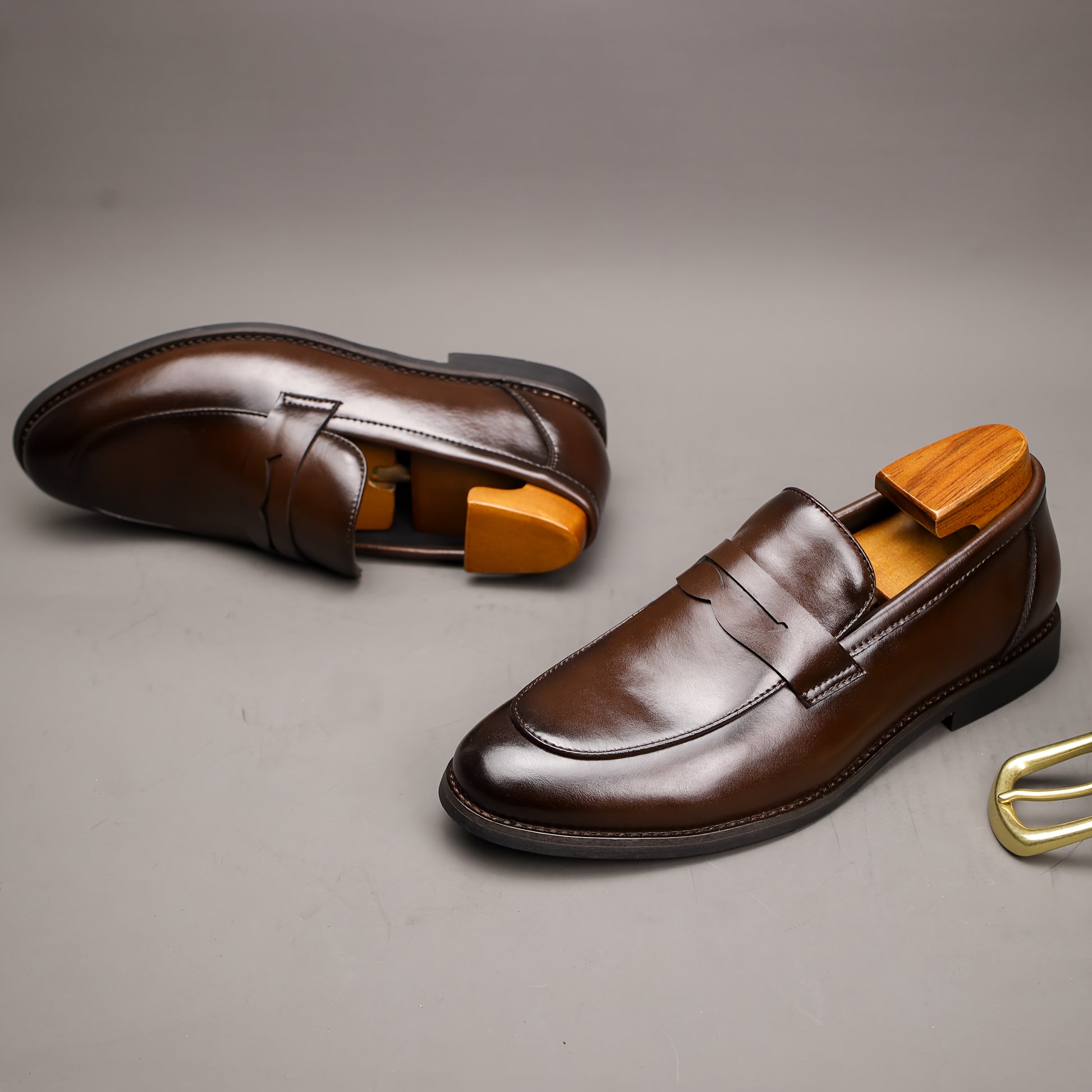 JASONSTAR Men's Genuine Leather Slip-On Loafers - British Style Moccasin Shoes, Elastic Square Toe Closure, All-Season Brown/Black, Wedding & Office Wear, Comfortable Casual Footwear (Gift for Dad, Father’s Day) - Durable R