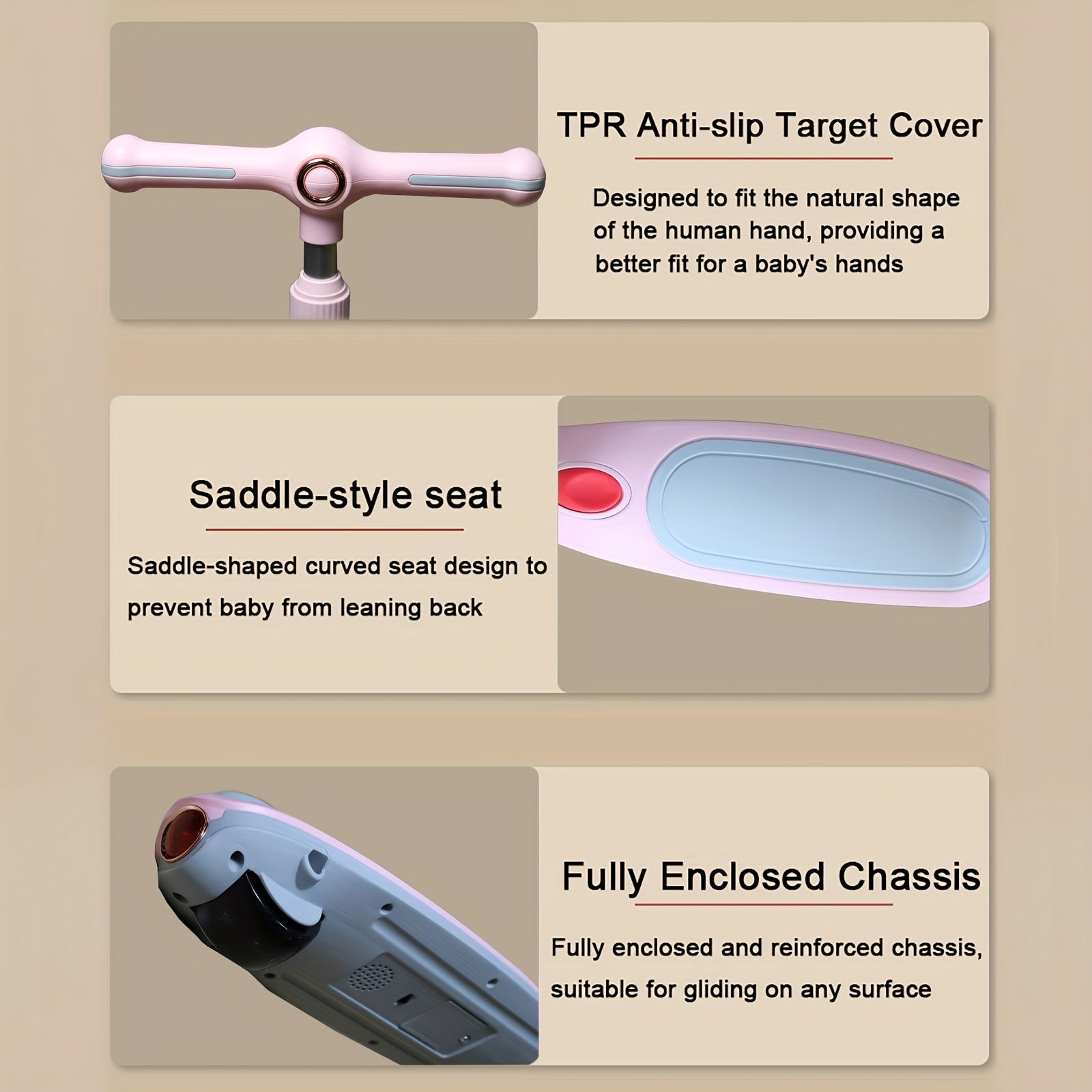 Kids Scooter with Foldable Seat & 2-in-1 Sit & Stand Modes, 5-Level Adjustable Handlebar, Pink with LED Lights & Music, 2-Wheel Stability, Front Brakes & Rear Suspension, Heavy-Duty Construction for Boys & Girls 3-12 Years (B