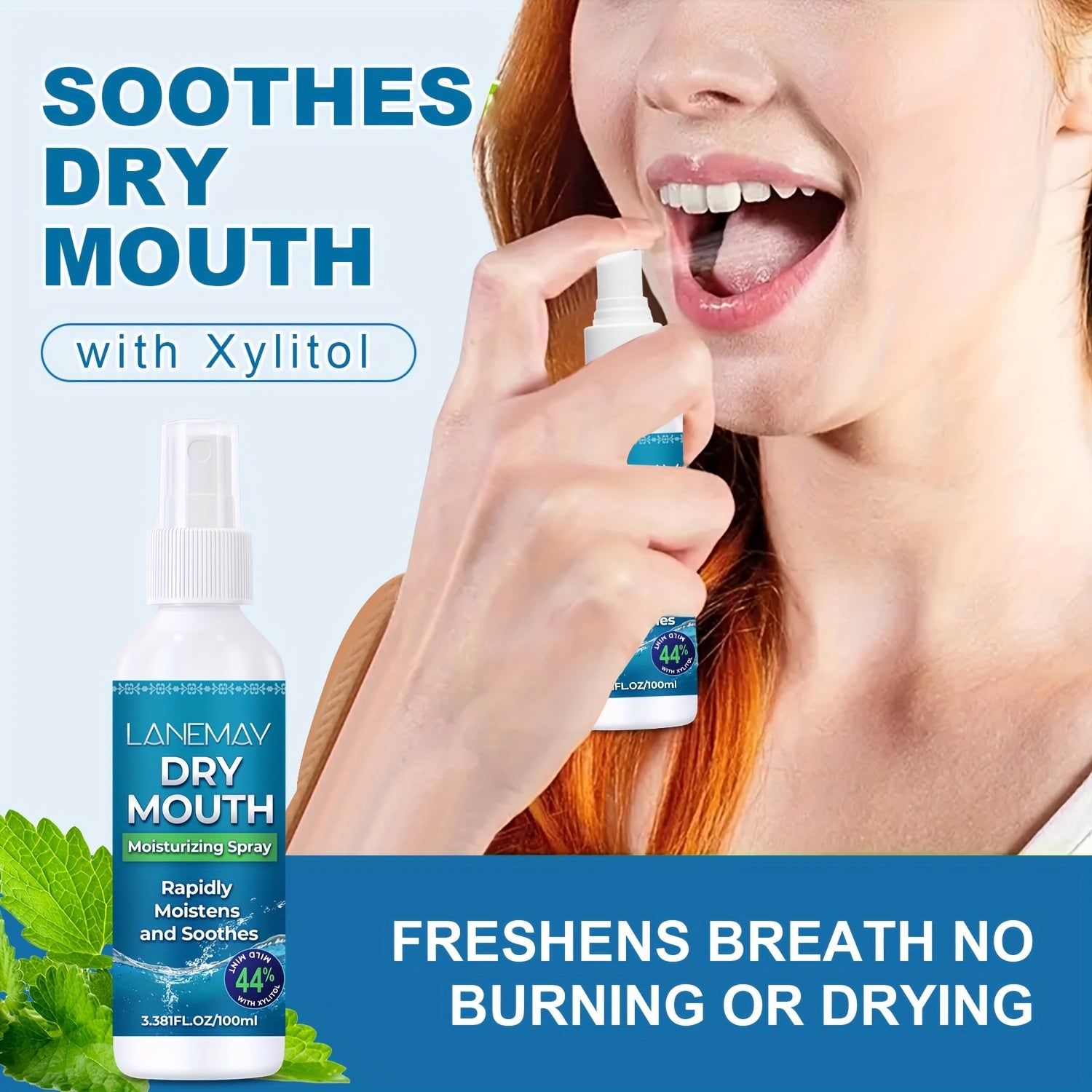Lanemay Dry Mouth Moisturizing Spray 1.01fl.oz. - Stimulates Saliva for Fresh Breath, Reduces Acid, Fast-Acting Relief, Extended Effect, Natural Ingredients, Ideal for Adults