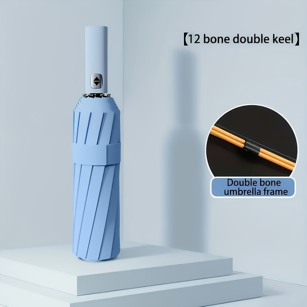 Large Automatic Folding Umbrella - Double Rib Design, Windproof &, 12 Ribs, Compact & Durable, Black with Orange Accents, Dual User Coverage, | Fashion Accessory | High-quality Fabric, Outdoor Umbrella