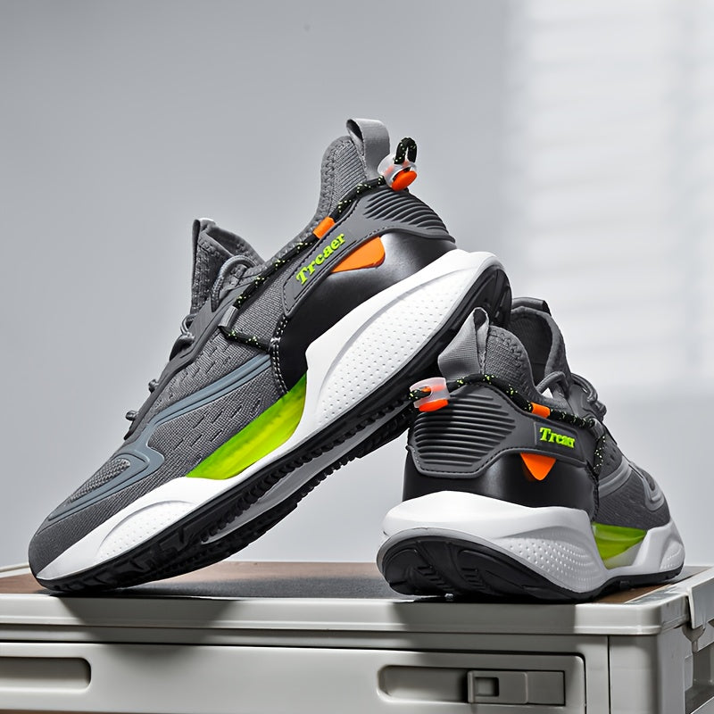Men'S Breathable Mesh Running Sneakers - Lightweight, Non-Slip, Durable Hiking & Fitness Shoes with Air Cushion for Indoor/Outdoor Use, Gray & Green Design, Casual Athletic Footwear | Modern Sneakers | Breathable Mesh Uppe