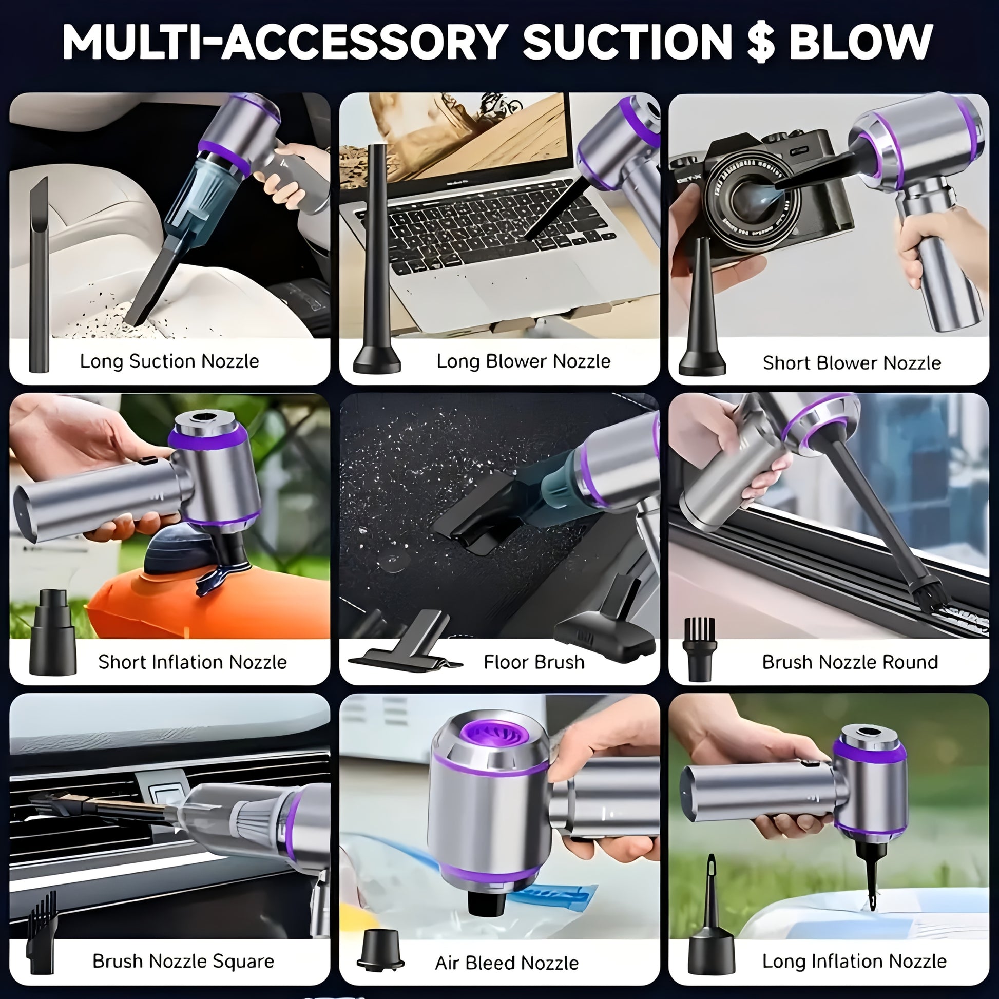 Aspirador portátil sem fios de alta potência 20000PA, mini aspirador 4 em 1 com compressor, soprador de ar e bomba, com motor sem escovas, ideal para carro, casa, escritório, campismo e limpeza de pó de teclados de computador e portáteis.