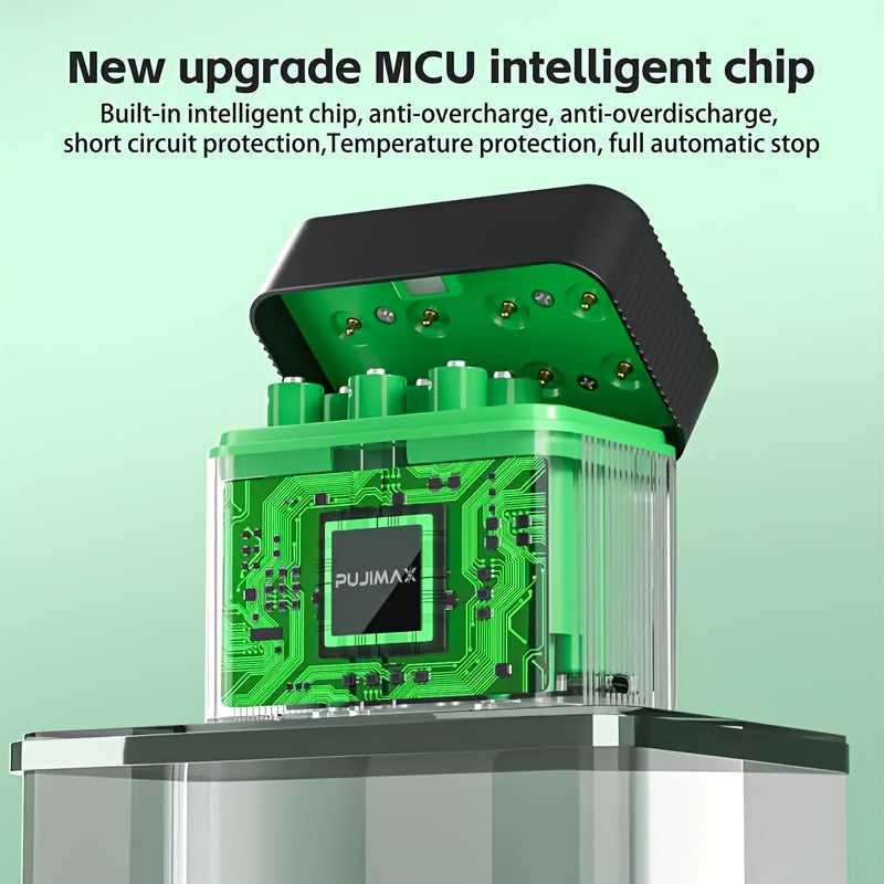 PUJIMAX 8-Pack High-Capacity 4255mWh & 1100mWh AA+AAA Lithium with 8-Slot Fast Charger - Long-Lasting Power, Over-Voltage/Over-Current/Over-Heat/Over-Temperature/Over-Voltage Protection, Compatible with Smartphones, Laptops,