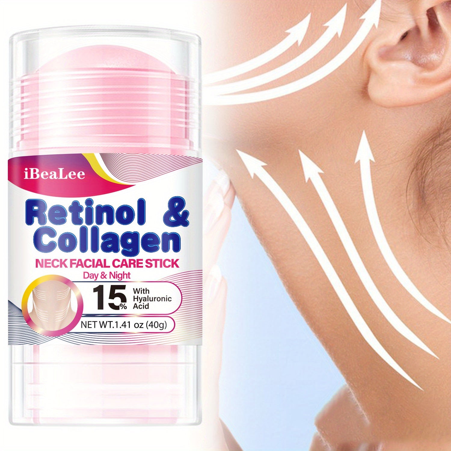 Stick Refirmante para o Pescoço com Retinol e Colagénio: Hidratante Facial com Complexo de Retinol e Colagénio 5% - Redutor de Papada - Creme de Dia e Noite - Creme Facial Refirmante e Hidratante, 40g/1,41oz