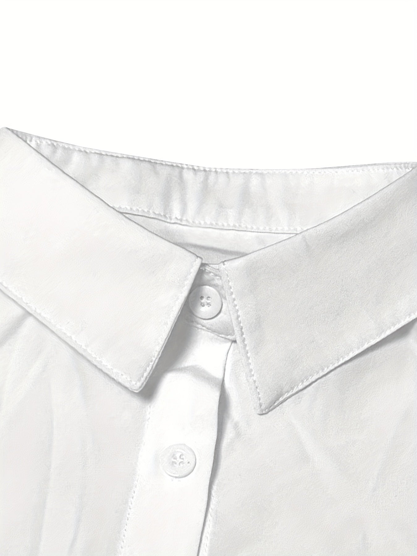 Blusa de cor sólida com gola de lapela, blusa casual de manga curta com botões à frente para a primavera e verão, roupa de mulher