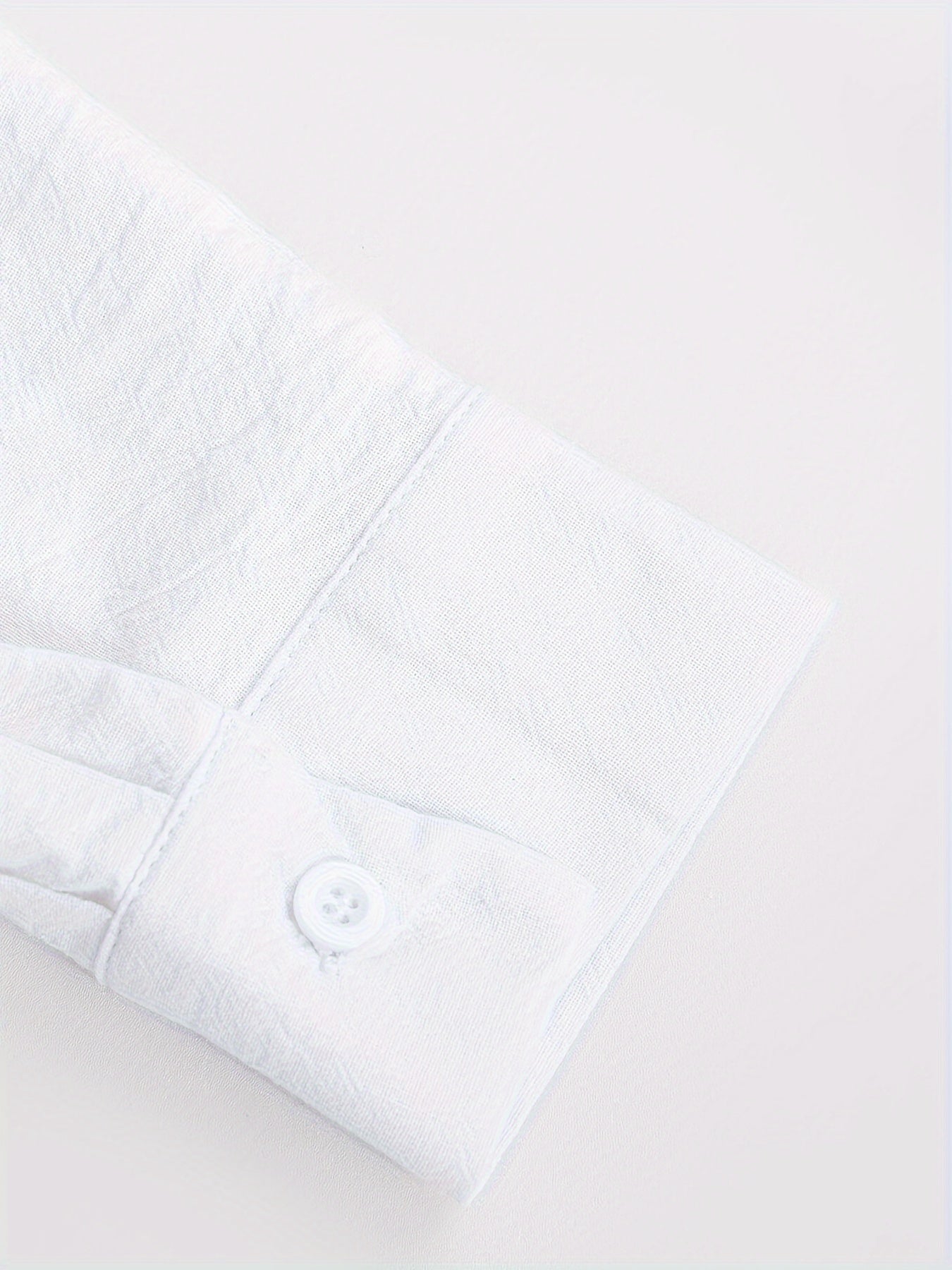 Camisa de homem em algodão de manga comprida e cor sólida com botões, modelo com lapela, ideal para a primavera e outono.