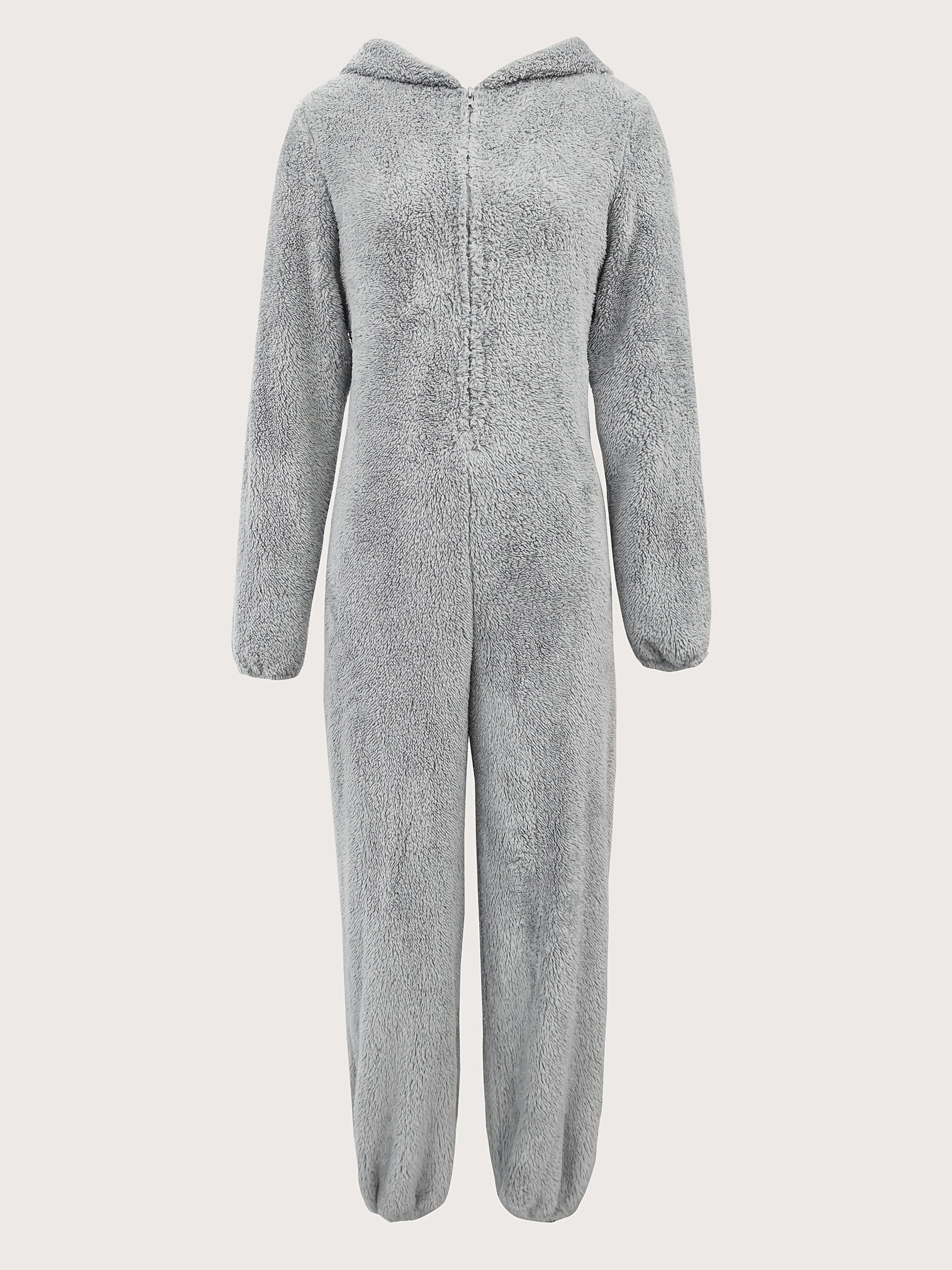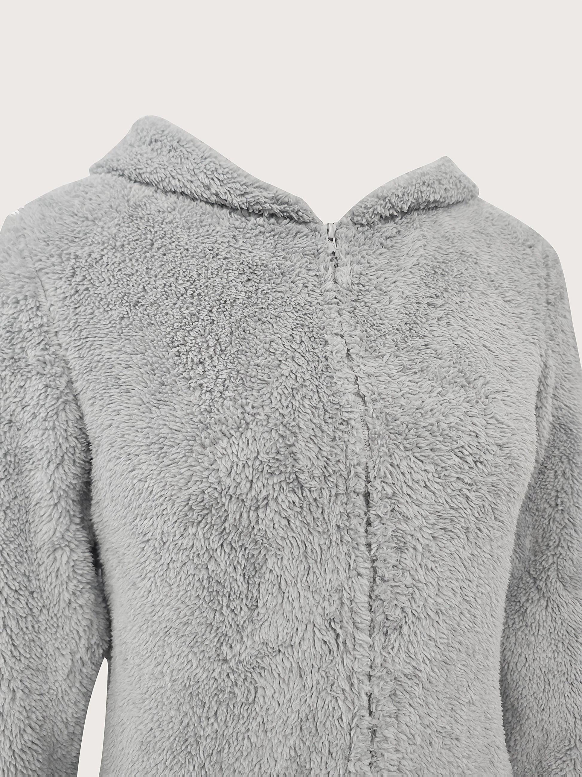 Macacão com capuz e fecho, forro turco, modelo casual de manga comprida e quente para o outono e inverno. Roupa feminina.