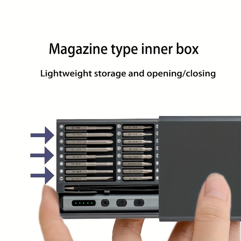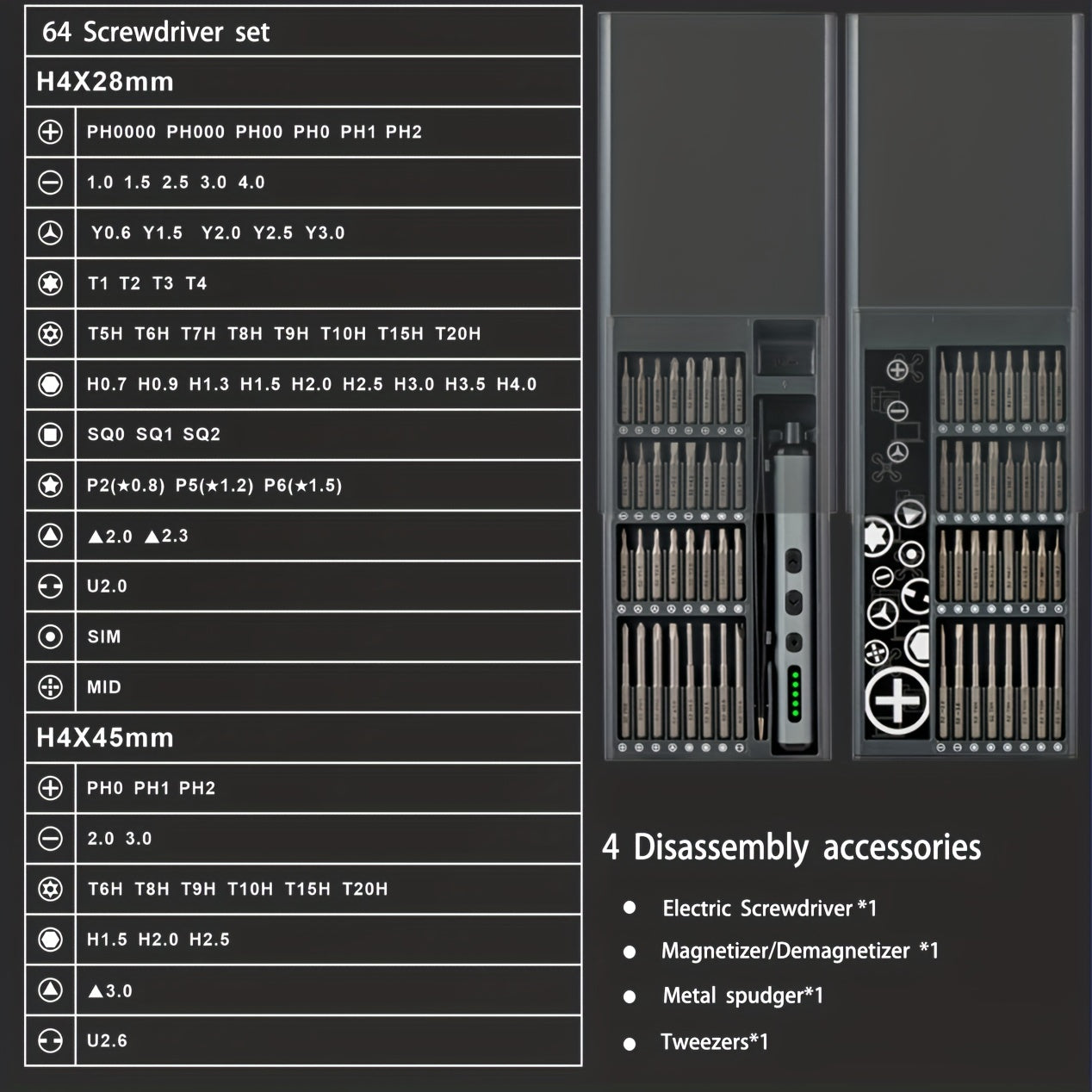 Chave de fendas elétrica 68 em 1 melhorada com 5 níveis de binário (0,1-0,5 Nm), conjunto de precisão com bateria recarregável de 350 mAh e luz LED, ferramenta para reparações domésticas em telemóveis, relógios, câmaras e computadores portáteis.