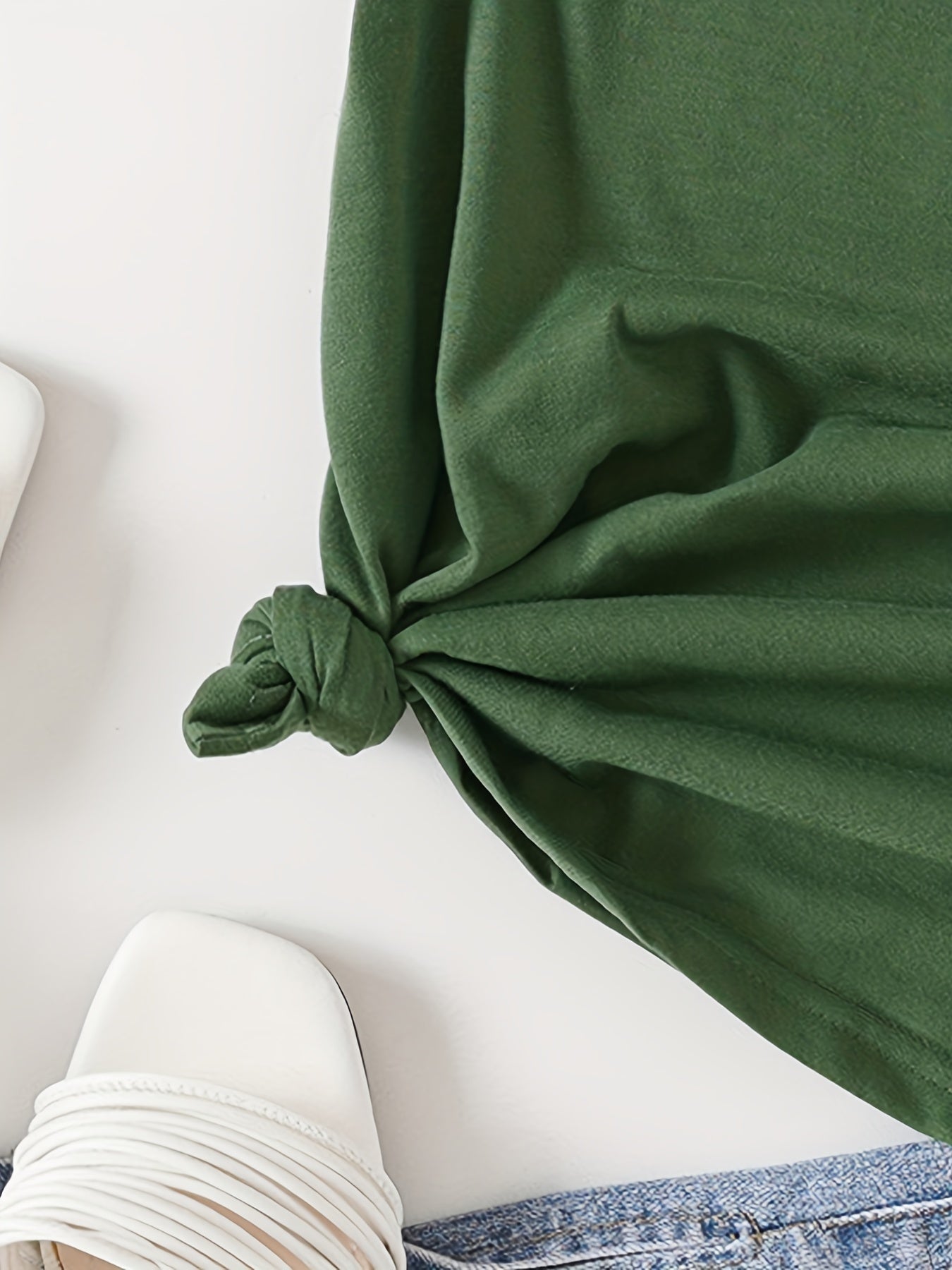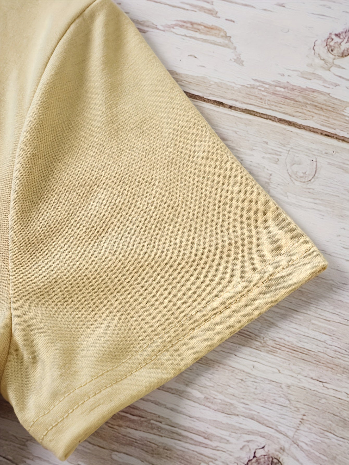 T-shirt casual para mulher com estampado floral de borboletas e margaridas, gola redonda - Verde azeitona, Lavável à máquina, Modelagem regular para looks casuais, Moda para todas as estações, Estilo descontraído, Tecido não transparente